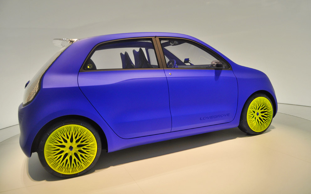 If we had had Ross Lovegrove’s outfit, particularly his fluorescent yellow running shoes, we wouldn’t have had to worry, at least not about our appearance. In fact, Lovegrove was in one of the halls at the Triennale presenting an automobile, a concept car designed for Renault – he styled himself accordingly, of course. Does this mean we should all color coordinate with our own or shared set of wheels in future? “Twin’z” is the name of the matte-blue vehicle that according to Lovegrove seeks to explore “the boundaries between art, design, technology and innovation”, but ultimately is not a new vehicle concept at all, but a conventional car pimped up like a trendy sneaker, where all manner of fluid lines turn the good old streamlined design into mere decoration.