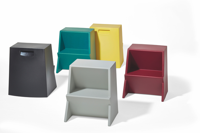 "Mono" is a multi-talent: Steffen Kehrle created the stepstool for Richard Lampert, which not only helps to reach higher levels, but also serves as a side table, seat or robust children's room furnishing. And when "Mono" is not in use, its sculptural form in many colours also serves as decoration. Its position can be changed quickly: with a recessed handle and light weight, the step stool can be moved effortlessly. The stand is always stable thanks to the ingenious design with closed surfaces and a sloping runner shape. Rotationally moulded from non-toxic and resistant polyethylene for durability, "Mono" is a lifelong everyday helper. By the way, if that's not what you're looking for, it's also recyclable.