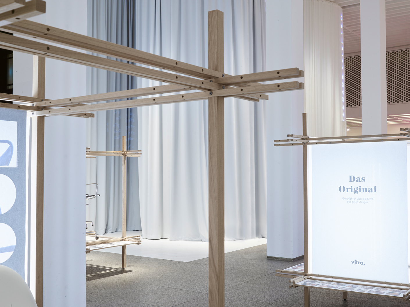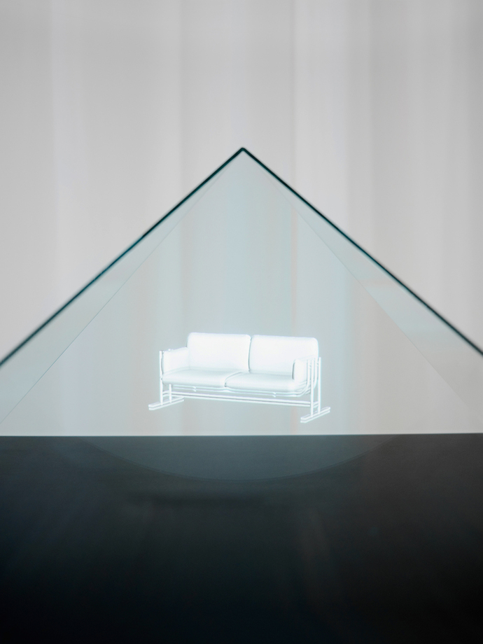 The extraordinary presentation by design studio Relvão Kellermann shows the 2018 winners as 3D holograms. To this end, darkened areas were specially created in the large hall of the 1950s museum building using floor-length curtains. The winning products are very wide ranging – from the mirror “Piega” (Classicon) to the sofa “PaiPai” (Ligne Roset) to the bar trolley “Grace” (Schönbuch). The designs include works both by such familiar names as Stefan Diez, Alfredo Häberli and Sebastian Herkner, and by celebrated newcomer Victoria Wilmotte.