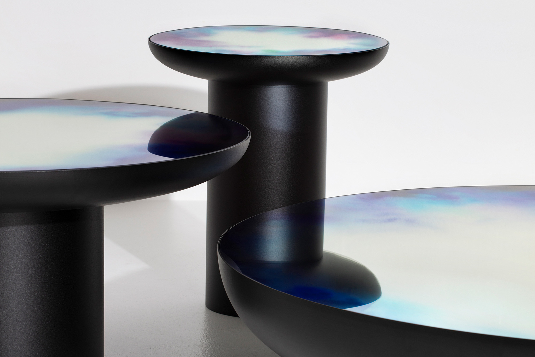Jury statement: The surface of Constance Guisset's side table “Francis Table” for Petite Friture is reminiscent of an oil film on water - or an abstract watercolor. The colour effect gives the mirrored table surface an enormous depth. Mirrors, steel and epoxy resin varnish may be an unusual combination of materials, but here they are all successful.