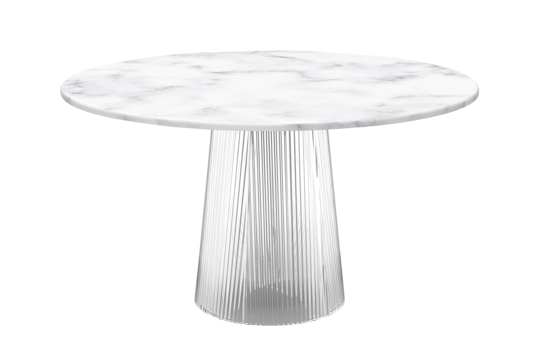 Jury statement: Sebastian Herkner has translated the markance of his lamp “Bent” for Pulpo into a table foot for the series “Bent Tables”. Despite its filigree cast glass shape, the foot carries a marble top in white or black and thus plays with contrast and structure.
