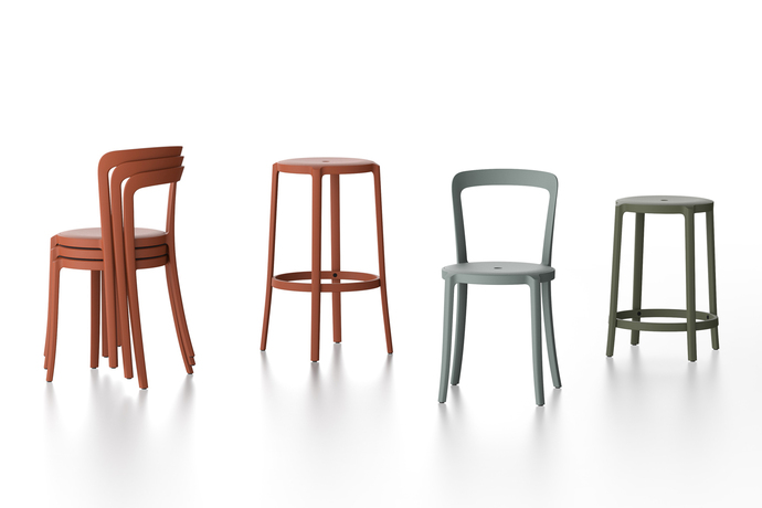 Jury statement: Sustainability and a new way of thinking - the chairs and stools “On & On” by Barber & Osgerby for Emeco are made of recycled materials such as plastic bottles and glass fibre, are suitable for indoor and outdoor use and are an eye-catcher thanks to their curved backrest. In many colours and variations, with seats in oak, ash or upholstered, there are numerous possibilities for an individual design.