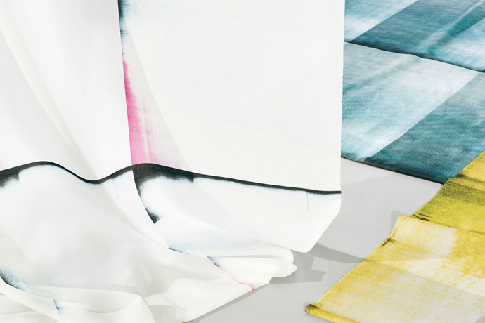 Jury statement: “Scrap_CMYK” by Rikako Nagashima for Kinnasand combines graphics and sustainability - the four airy designs are digitally printed onto recycled polyester.