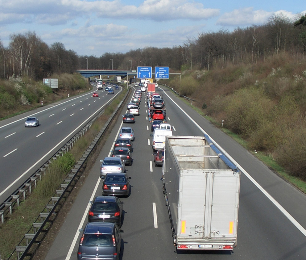 Michael Schreckenberg: Sometimes they are caused by accidents, road works and weather conditions. Most hold-ups, about 60 percent or more, arise through overload. Especially at interchanges and on uphill stretches, the traffic first of all becomes more dense and flows more slowly. If an individual then comes to a stop, as a result of over-reaction, being distracted or something like that, and therefore others have to stop because of that individual, a hold-up wave is caused. It moves backwards against the traffic flow at approximately 15 km/h and can change to another highway via access ramps. If people then switch lanes, they cause a further hold-up that they themselves do not even see. Drivers only think forwards. The best thing would be to take the human factor out of driving. That would really eliminate 10 to 20 percent of hold-ups caused by overload. Lots of things are being tried out here, with assistance systems, apps and so on. The technology can simply do it better. Human behavior in vehicles is not ideal. Animals can do it much better – this is evident in swarm behavior, for example in the case of ants.