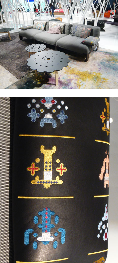 As a consequence, formally straightforward seating arrangements, whose material properties (often leather or a woven) emphasize how solid their overall impression is, have by no means disappeared, and there continue to be many of them. As regards the very latest among them, however, well there the flag of Modernism flies at half-mast. As has been evident for a few years now, ornament, pattern and embroidery are regaining lost ground, seeking to proclaim a new, young, global image of comfort, uniting in the patterns what remains so separate in reality, namely the first and third worlds. What this can look like was especially well demonstrated in Moroso's showroom, which melded into a party mix of cultures, right down to the trivial photos from Harare, African patterns, textures and rhythms. You don't need to be a prophet to predict that this kind of ethno-mix will soon come a cropper.
