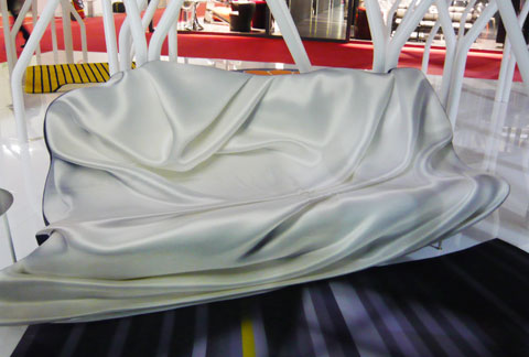 An approach less exposed to the danger of neocolonialism and ethno-kitch then the simple reliance on effects (one that evaporates swiftly) is taken by, among others, by the female designers at Sweden's "front" group, who have developed various sofas as the "Moment" line for Moroso - and the furniture makes use of the trompe l'oeil of painting. The principle behind it is simple: What from a distance seems to be a fold transpires on closer inspection to be an illusion, the sofa being in reality as smooth as canvas. And what looks like a bench made of thick timber proves to be by no means hard.