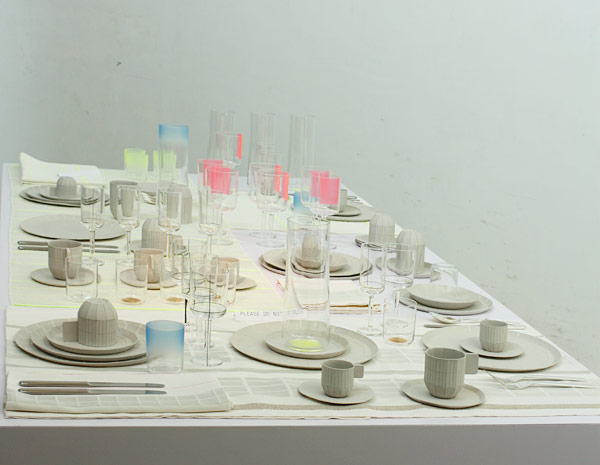 Carole Baijings: We already had the whole table finished a year ago - but only in paper and cardboard! It looked just the same as it does now, although the paper designs are now objects made of the proper material. The appearance and tactile qualities of the paper designs have remained exactly the same in the end products.