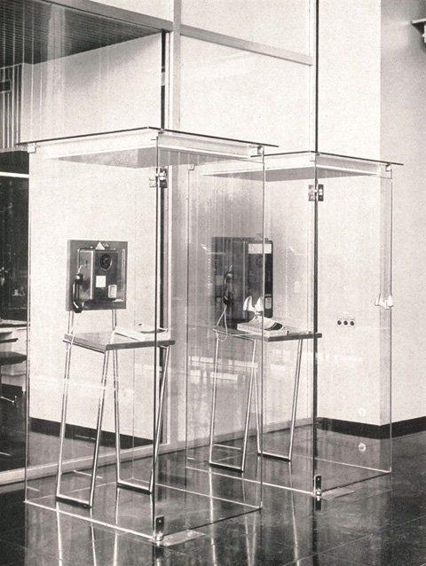 Making calls was extremely aesthetically almost 50 years ago - today office workers have to deal with penetrant colorful acoustic panels. Photo © Dreischeibenhaus Dusseldorf