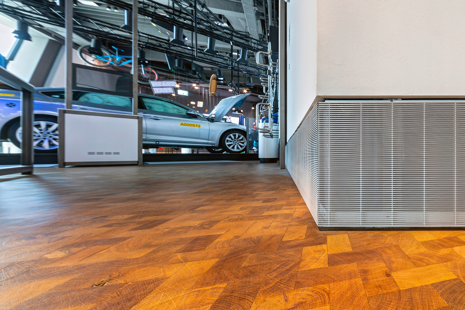 However, you need to look very carefully in order to find this cooling technology because it is perfectly integrated into the architecture, meaning that only the floor-level air vents are visible. Frameless and filigree, they can be integrated into the wall design. And thanks to the intelligent way they are linked to the lighting system, the high-performance units on the ceiling are difficult to make out. The system cannot be seen or heard and even the permanent exchange of air does not make itself felt. Moreover, if so required, the entire system can be dismantled easily.