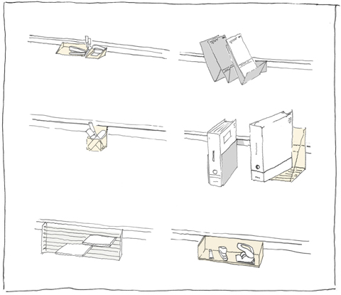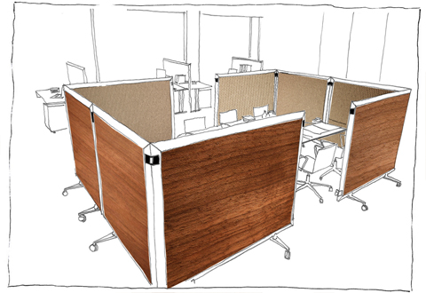 Dividing wall system, "Lindner Logic", designed in collaboration with Martin Ballendat | Illustrations © Sebastian Reuthal, Stylepark