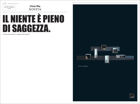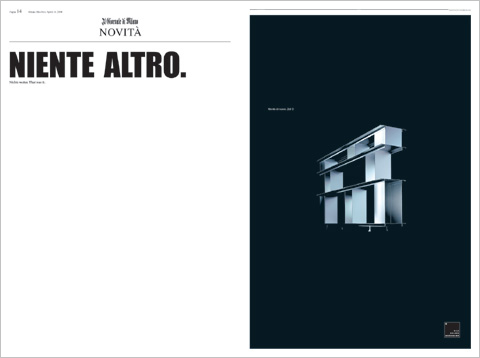 Some things are so good that they require few words – as they can simply speak for themselves. On the occasion of the 2008 Salone del Mobile in Milan, Nils Holger Moormann published a thin broadsheet entitled “Il Giornale di Milano”, the title page of which boasted a brief interview between Moormann and an otherwise anonymous journalist: What’s new, Moormann? - Nothing. - Huh? Nothing? Nothing new at Moormann? - Exactly. Nothing new! - So what is that supposed to mean? Moormann in crisis? - No, no crisis. That has a lot to do with courage, but not only with courage, but also with modesty. - Modesty? - Yes, exactly. Around us, all the world is gasping to find something new and exciting, the flash-in-the-pan success. In our firm, we are focusing on a phase of deceleration. We are not tackling anything new. We will examine existing things critically and improve them. Only thus is there a chance for reflection and an inner changes to our course. ... How do clients responds? - I like mature clients. ... Thanks your time. Brilliant the ingenious way in which he up-ends the world of glamour and gloss, the world of see and be seen, the world of the media with its constant search for novelties and all the others, who run along behind in earnest. It was high time someone turned nothing into a virtue and told the truth: Instead of always creating something new, it bears taking the time to improve your own work and its results and think about them. The broadsheet, which mainly consists of the small interview, not only contained convincing copy, but also featured great graphics, reminiscent of the classic face to US newspapers. The numbering for the issue (No. 000.000.000.001) gives reason for us to hope that there will be more novelties forthcoming from Moormann’s base in Aschau, Bavaria. And at the end Moormann wants mature clients, as everyone does, perhaps both, clients, and mature, as who among us does not want to be able to use our minds without direction from outside?! Smart, courageous Nils! All that’s left to say is: How did you do it, Mr. Moormann?