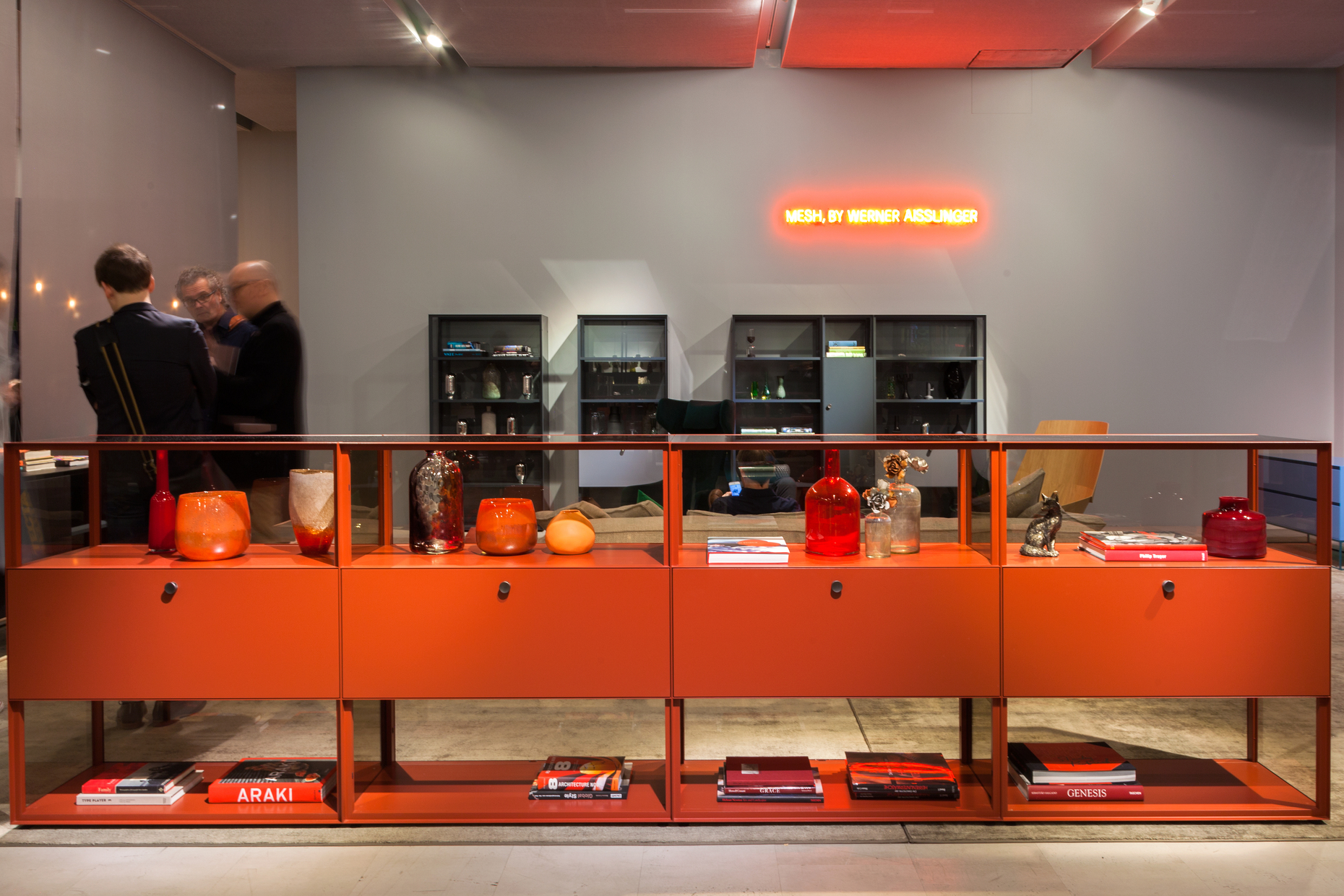 It is evidently well worth addressing the topic of “color in the room” carefully, and to make sure you have a coherent concept. In order not to risk a brush with the wrong paint pot, it seems best to take a tonal approach to color, such as Schönbuch does. The stand presented a blue, a red, a green and a gray room, and in each the color was present in different tones.