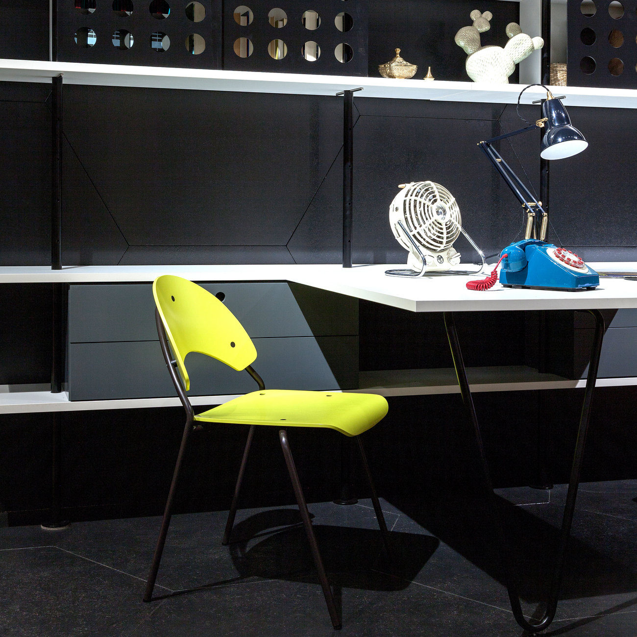 In Cologne, it is now bright yellow that is often used as a strong sole color – for example at Vitra, where the “Panton Chair” gleamed in a sunny yellow, or at Richard Lampert, where Herbert Hirche’s “Frog Chair” was resplendent in lemon yellow. Strong colors for strong pieces, a well-known ploy. But less customary when shelves or sideboards are the ones catching the eye with their colors; no longer playing the role of extras, they are now the protagonists. Not one but two designs by Werner Aisslinger vividly showed this: Piure exhibited his new shelf system called “Mesh” in a burnt reddish-orange, and Conmoto showcased “Pad Board” in a lush grass green. Speaking of green, the color stands like no other for a “new green lifestyle” and was to be seen in any number of different hues, for example in “Greenery,” a fresh and zesty yellow-green that Pantone has made its color of the year.