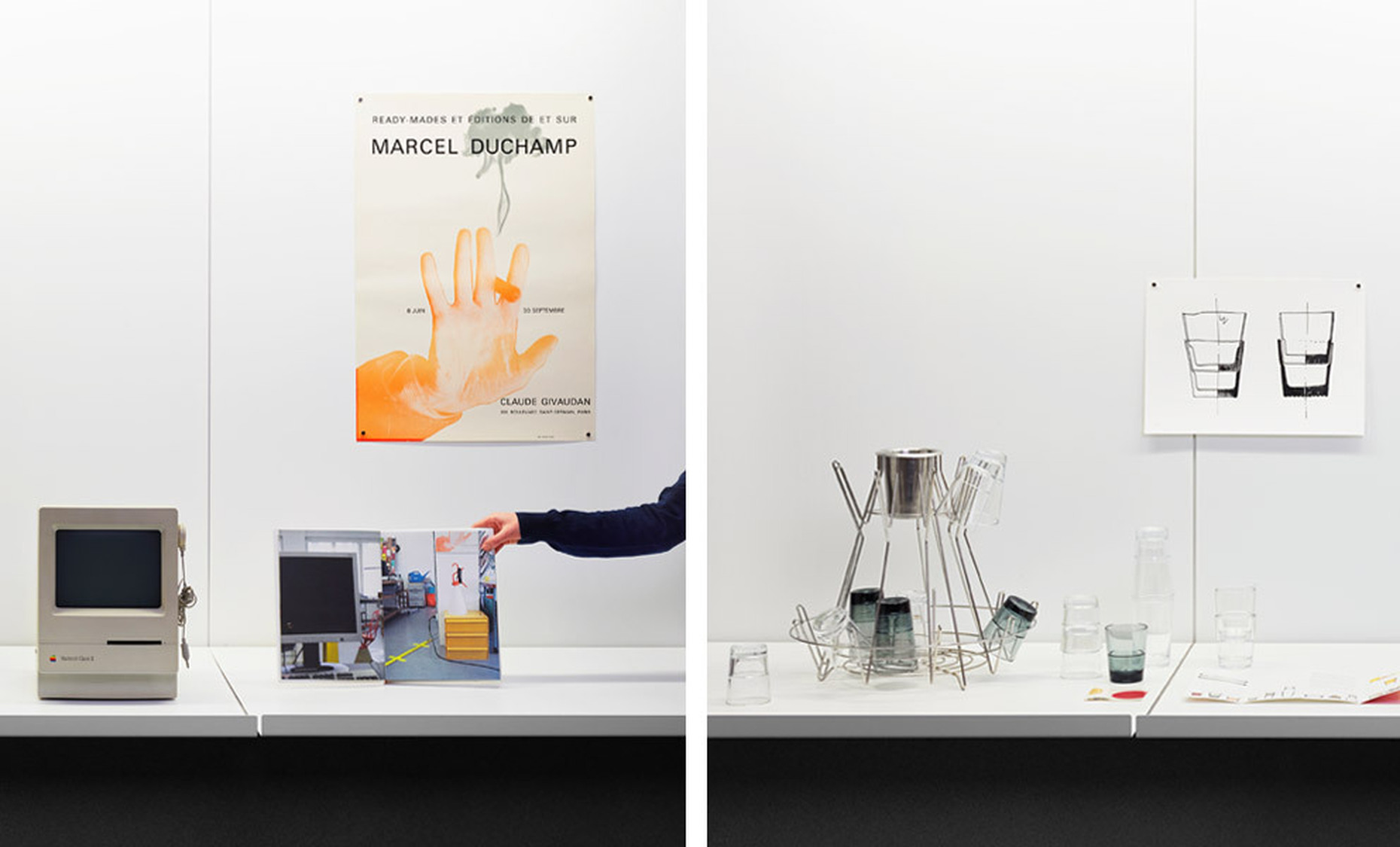 Let’s turn to the Object Space at the exhibition. One of the display cabinets contains a poster of Marcel Duchamp, you see how he is holding his cigarette and the smoke rising up, and below there is a catalog showing his ready-mades. Duchamp likewise fought against good taste. What did you find fascinating about Duchamp? Why did you select the poster and catalog for the display cabinet?