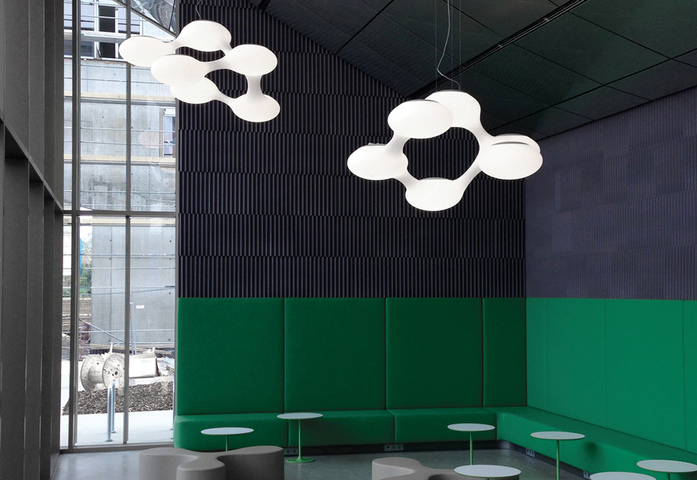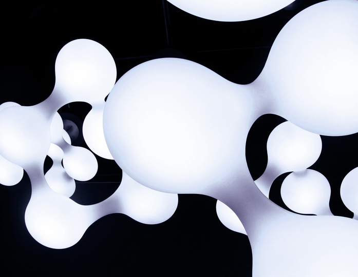 Are you more of a Cloud Number Nine or rather a Deep Space Nine?Whichever part of the universe you prefer, Cosmo is always open to your favourites ideas. The latest development from next is called Cosmo and manages to impress with its outstanding dimensions of 88 cm in height and a diameter of 160 cm – manufactured in a single piece.Our design goal was to create a luminaire that is optimally suited to illuminate wide and generous spaces, such as lobbies, stairwells and galleries, but can also be used to shops, bistros and lower-ceiling reception areas in an energy conscious way. The result is Cosmo – a luminaire that changes its appearance with every new perspective and which looks fascinating both as a stand-alone as well as in clusters. A circle of six light knots (each equipped with one LED 23,1W DALI, switchDIM, 3000K or 4000K) dissolves into the third dimension or hovers as a pure light form above every room. As a standard feature, Cosmo is fitted with six dimmable EBs (Dali).However, as much as Cosmo's shape and quality of light may fascinate you, it is also worth pointing out the unique way in which it is manufactured. Cast as a single piece in a two-cavity mould in a rotation process Cosmo's design proved to be an unprecedented challenge both in terms of engineering and precision.