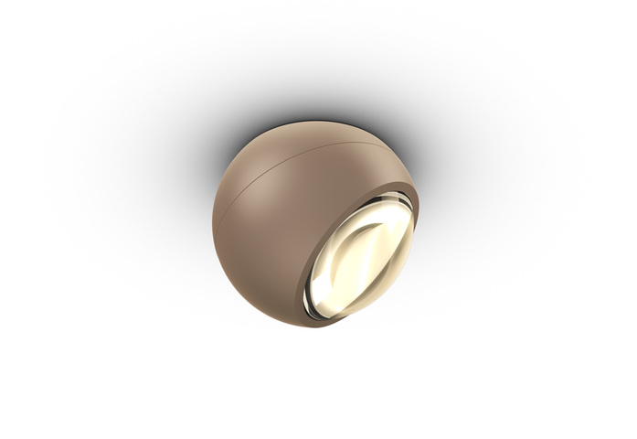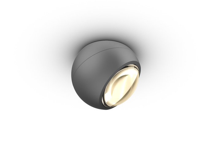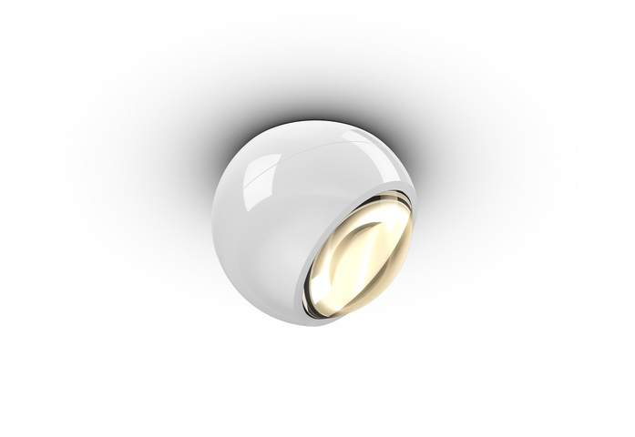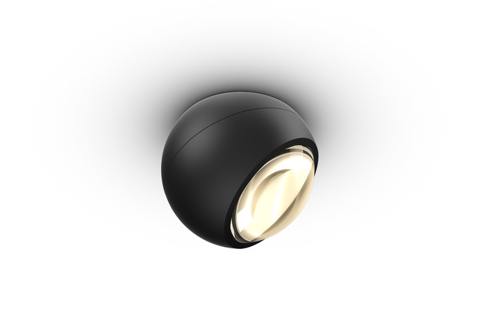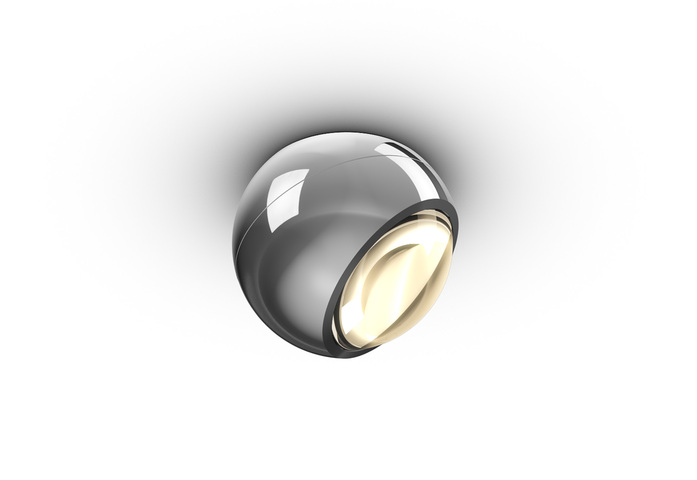 Pure magic – directly mounted to the ceiling this spotlight is 360° turnable and 45° swivable thanks to an extraordinary turning mechanism of the two halves of the sphere of the spotlight.