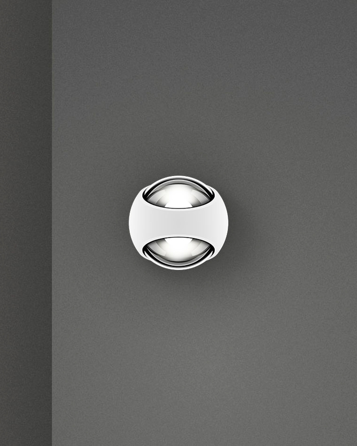 LED wall spotlight for exterior with spherical head and double-sided light output (up / down vertical)