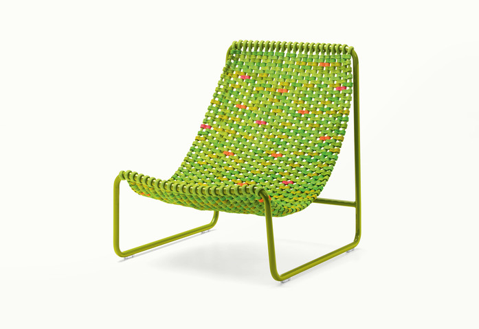 Upholstery: fixed, hand made with elements in braid in Rope yarn in solid colours or in two-colours combinations; the elements are joined together to create a net.