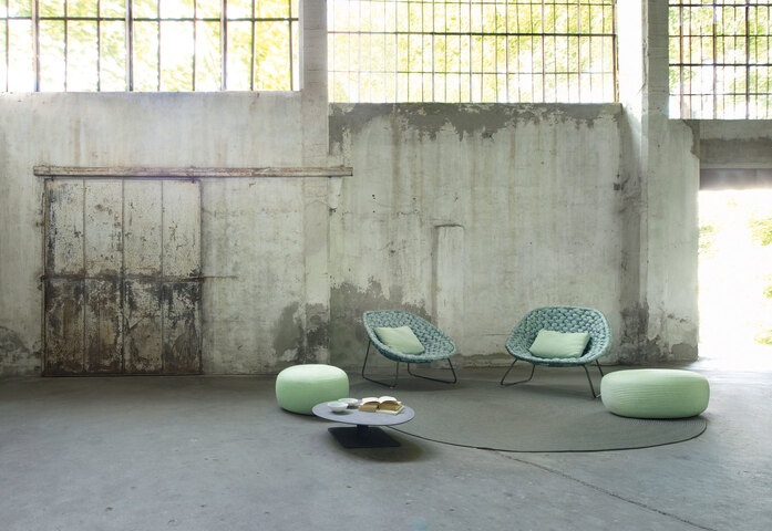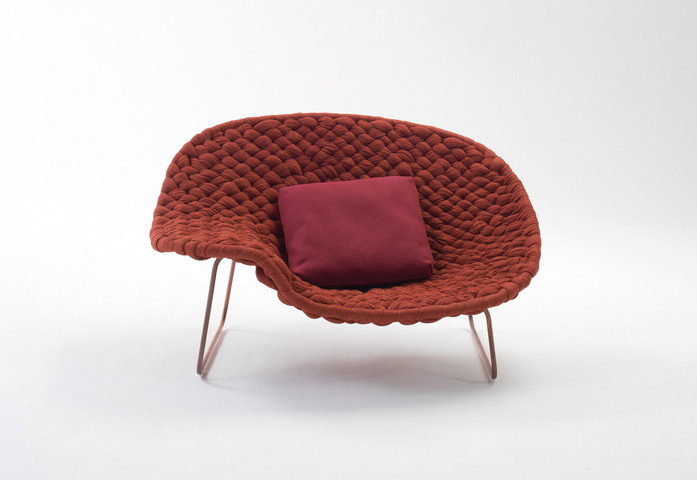 Shito is a new chaise longue with fixed structural cover hand woven with Chain Outdoor tubular knit. The visible base is available with different finishes: natural bras, natural copper or stainless steel with a special galvanic treatment made by De Castelli on an exclusivity basis.