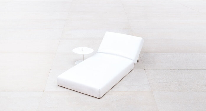 Sun bed with backrest adjustable in one position in addition to the rest position. Structure made ofstainless steel with a satin fi nish, plastic spacers. Padding in stress resistant expanded polyuretha-ne, foam covering in waterproof polyester. Removable cover available in the fabrics Luz, Rope T,Light or Brio. The use of a Winter Set protection cover is recommended.