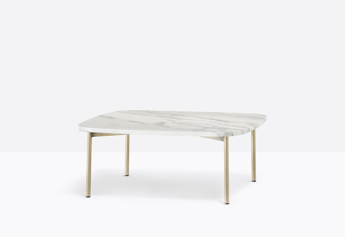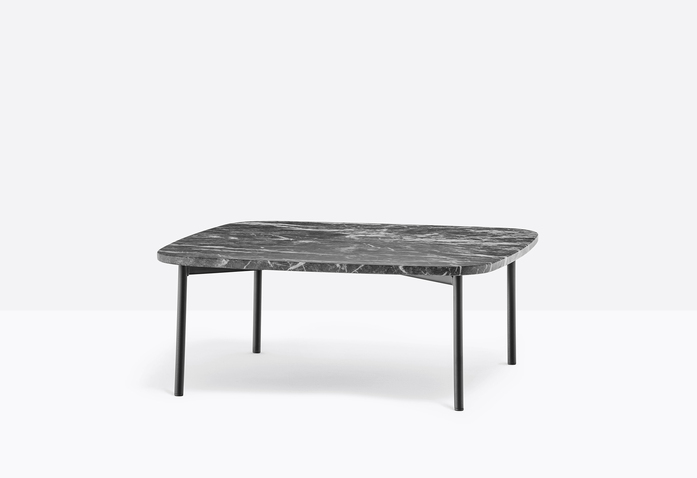 Soft lines and clean design distinguish Buddy low tables, thanks to their friendly and versatile character can complete the interiors of every environment. Coffee table available in two different heights with aluminium legs and square 790x790mm marble, composite or solid laminate top.