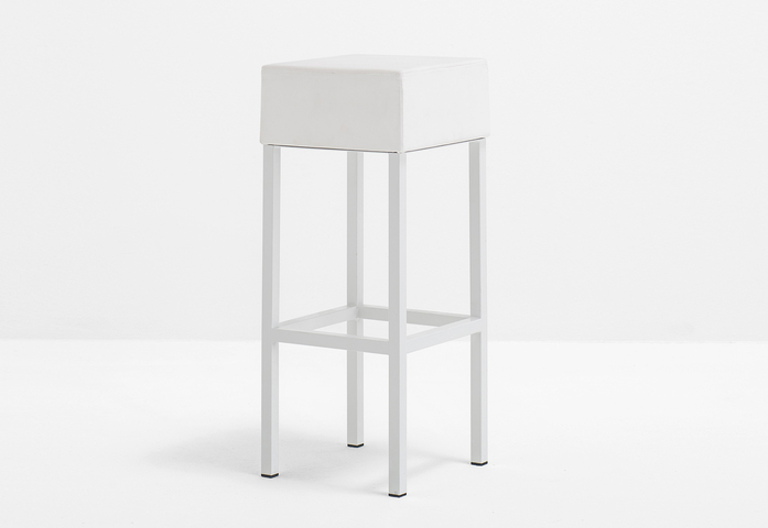 Cube barstool design is inspired by a pure and simple geometrical language. It has an upholstered seat in fabric, leather or simil leather with a steel tube frame 25x25 mm. Thanks to its compact structure, it is conceived for optimizing the interior furnishing spaces. Height 800 mm.