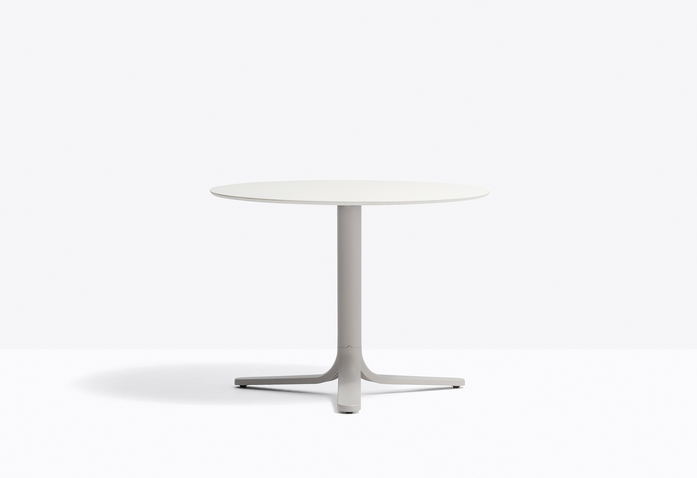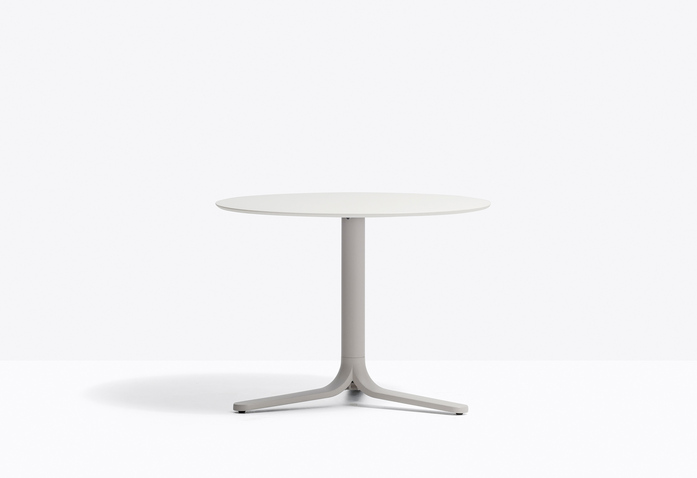 Fluxo uses primary geometric shapes, starting from the section of its stem-like base, to generate a form with clean and minimalist lines. The circular-section vertical column stretches down, spreading out into "ribbons" that form the base of the table. Die-cast aluminium base with three legs. Height 500 mm. Available in polished or powder coated aluminium and titanium.