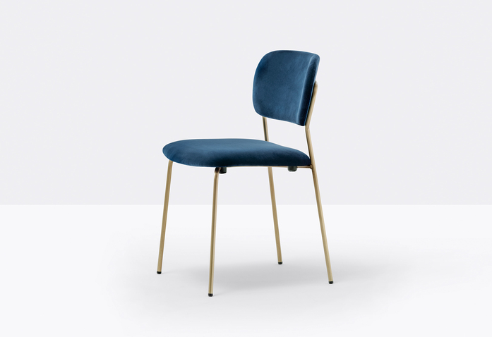 Harmony of shapes, ergonomics and elegance are the characteristics of the Jazz chair. The upholstered seat and backrest, separated by a functional opening, are supported by a thin steel frame. Customization is possible thanks to the combinations of the upholstery, in fabric or leather, and the different finishes of the steel.
