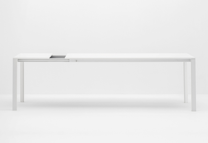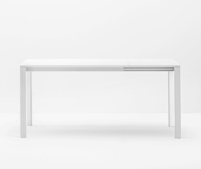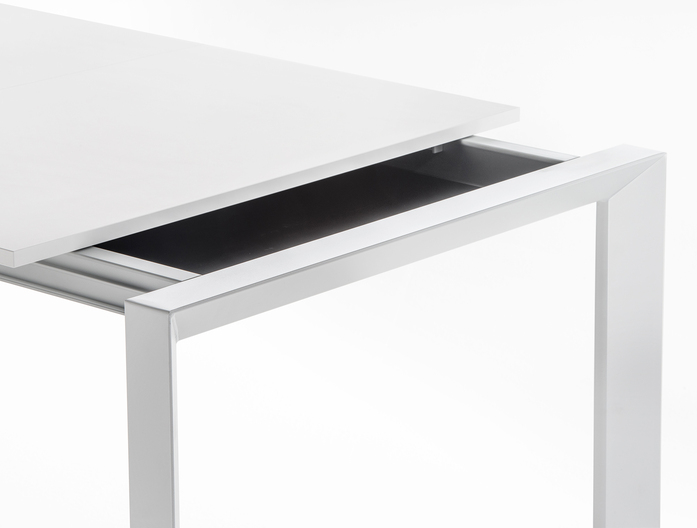 More table is the expression a new dimension of versatility by decorating the living space with style and quality. More table is available in three different dimensions. Shaped structural steel legs, aluminium sliding rails, melamine top.
