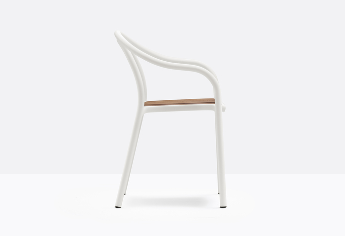 Soul Outdoor is an innovative and original armchair, able to express an idea of uncontaminated and pure creativity, defined by its soul. The aluminium tubular frame Ø 30 mm clasps an ergonomic seat in shaped teak slats, almost like an embrace. The minimalistic, flowing silhouette, is accentuated by the fluidity of aluminium, which ensures strength and lightness, while presenting a strong visual impact and a nice contrast with wood.