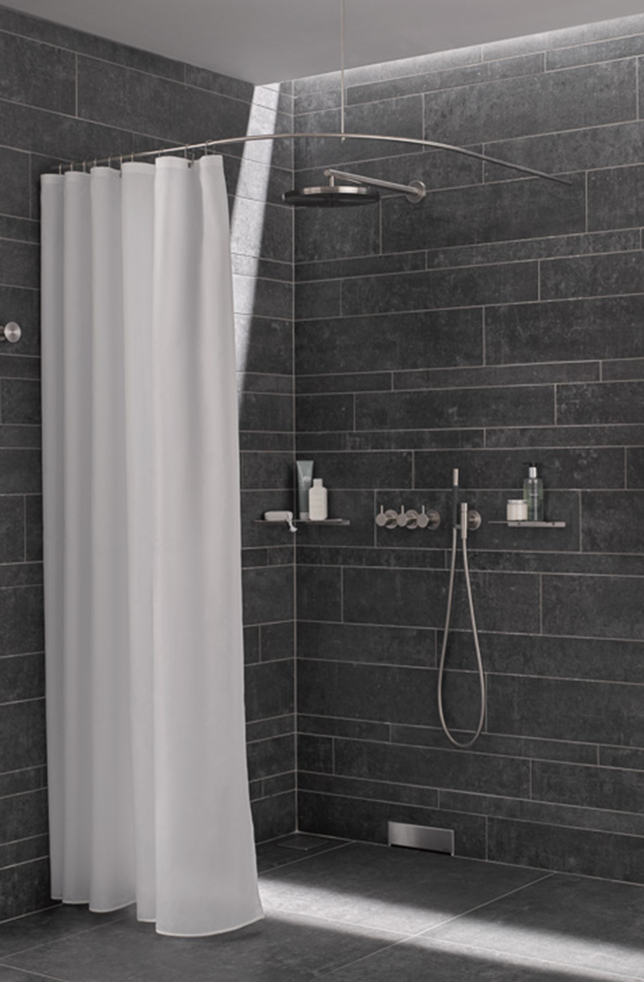 Mit unseren Duschvorhangstangen werden von Architekten nicht nur in Hotels und Wellnessbereichen attraktive Duschen und Bäder gestaltet. Eine solide und gut designte Duschvorhangstange aus Edelstahl mit einem schönen Duschvorhang verleiht modernen Bädern eine angenehme und wohnliche Atmosphäre. Neben der typischen L-Form und U-Form finden Sie zahlreiche Winkelstangen für eine außergewöhnliche Duschabtrennung – in guter Form, modern und in bester Funktion. Für jede Einbausituation ist eine Lösung möglich. Wir bieten neben Serienmaßen ebenso eine Maßfertigung an. Unabhängig von der Duschstangen-Form kann der Duschvorhang dabei immer an unseren Zwischenträgern vorbeigezogen werden. Die Träger und die Haken sind so gestaltet bzw. aufeinander abgestimmt, dass das Vorbeigleiten des Vorhangs möglich ist. Wir nennen