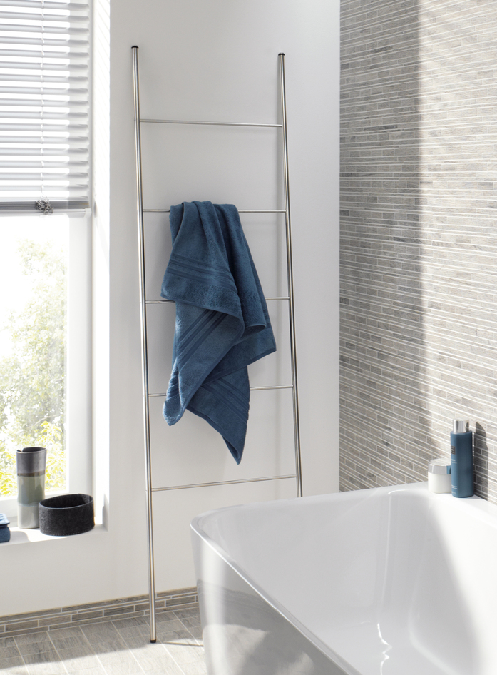 Towel ladders are a functional design element in the bath and shower. They are modeled arbitrarily on the wall and take up to five towels on. Our towel ladder is made of solid stainless steel rods by hand. The Anlehnpuffer and feet are made insensitive NBR synthetic rubber. We offer two width measurements. On request, individual sizes are possible.