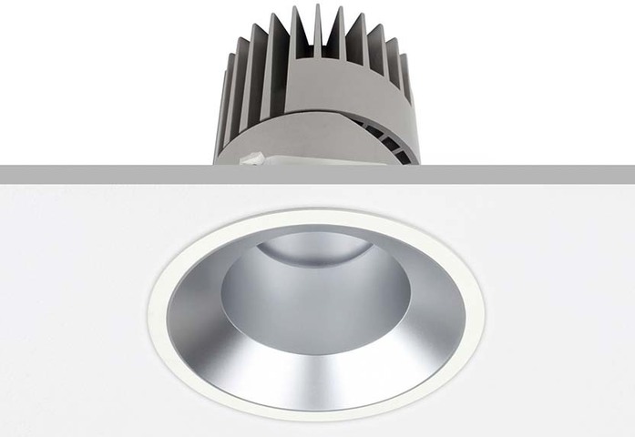 The PERFORMANCE SERIES product family offers downlights in two shapes and five different sizes. As a covering or trimless downlight in the shape of round or square, the optics can be selected - depending on the area of application and current requirements - with different beam angles from 20 ° to 60 ° in steps. In addition, the secondary reflectors are available as directional spotlights, downlights or wallwashers, which can be used as required and flexibly and easily exchanged or exchanged as required.