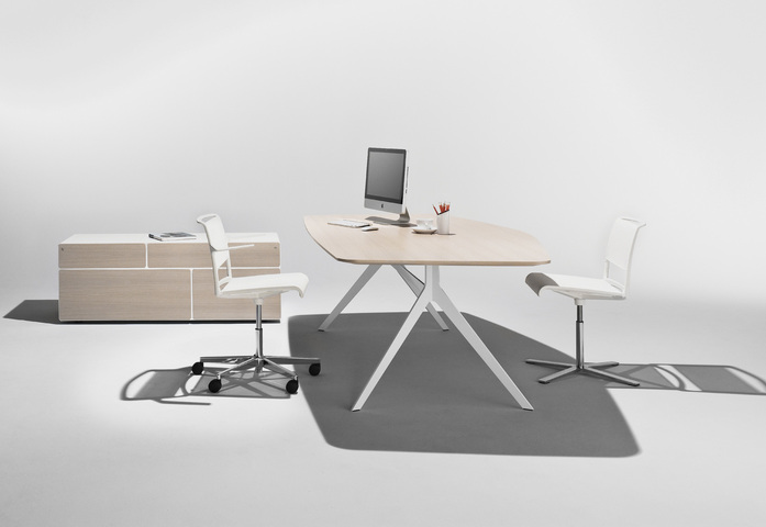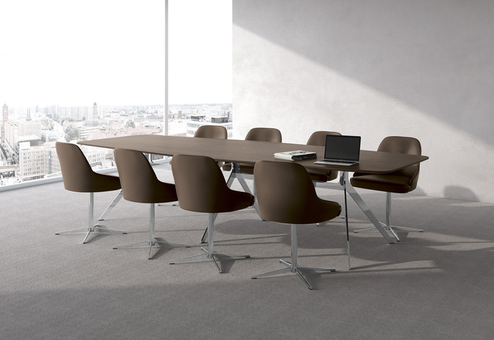 For making an impression and for concentration. For traditional office plans or for open, communicative room arrangements. The modular workplace system is made for unique private offices, for team workplaces, for meeting areas and for project work. Star is a comprehensive office programme which allows the realisation of complex projects using consistent design concepts and materials. Tables, containers and highboards are the basic elements. Functional, of premium quality, and with an individual clear look. The tabletops in various sizes and shapes are available in selected fine veneers or structured lacquer for finely structured, gleaming matte surfaces. Containers and highboards are available in lacquer aluminium silver, lacquer black metallic or lacquer white structure.