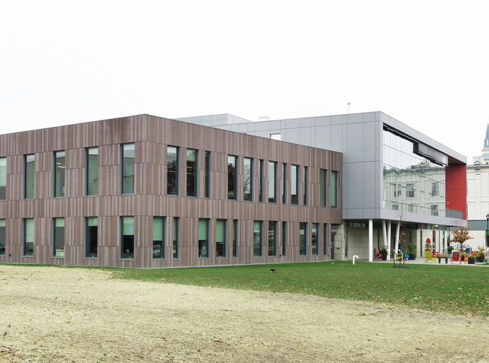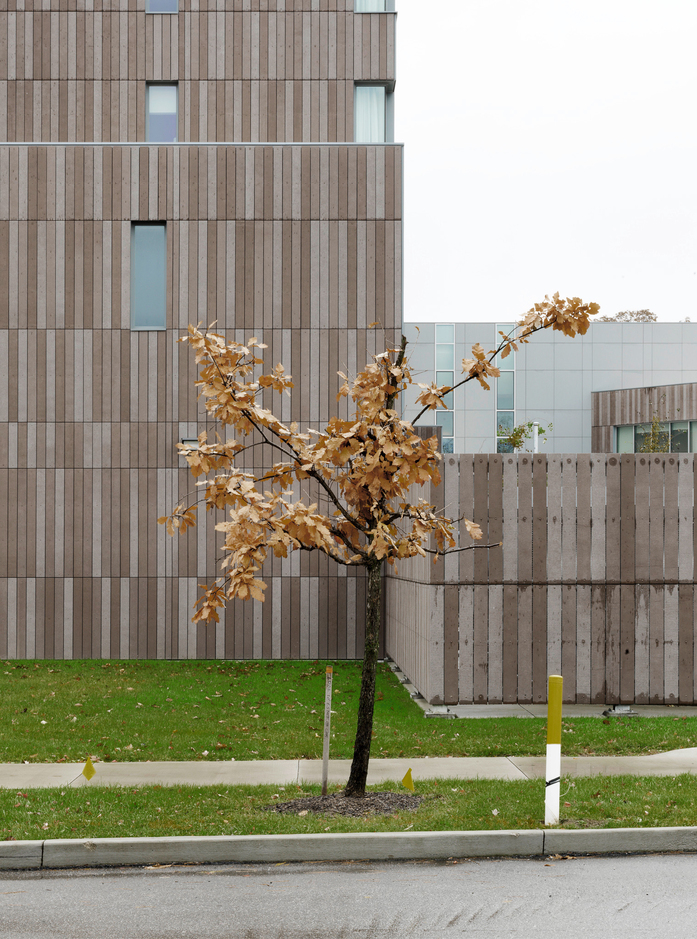 The Oberlin College is a leading national educational institution and sets high standards in terms of environmental soundness. The Gateway Center also includes a campus hotel. For the facade, the architects at Solomon Cordwell and Buenz opted for the sustainable öko skin slats in terracotta. The surfaces were sandblasted to different degrees, creating an interesting play of colours.