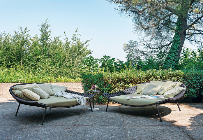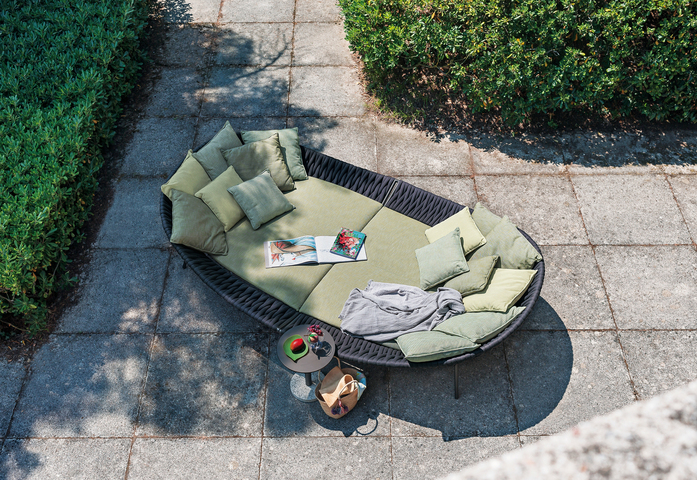 Designed by Gordon Guillaumier under the RODA brand, it is the new must-have item. Almost an icon of relaxation and leisure: with its elliptical shape, subtle backrest and steel frame, ARENA gives the idea of a floating raft, ready to welcome one or more people on its soft, comfortable cushions.