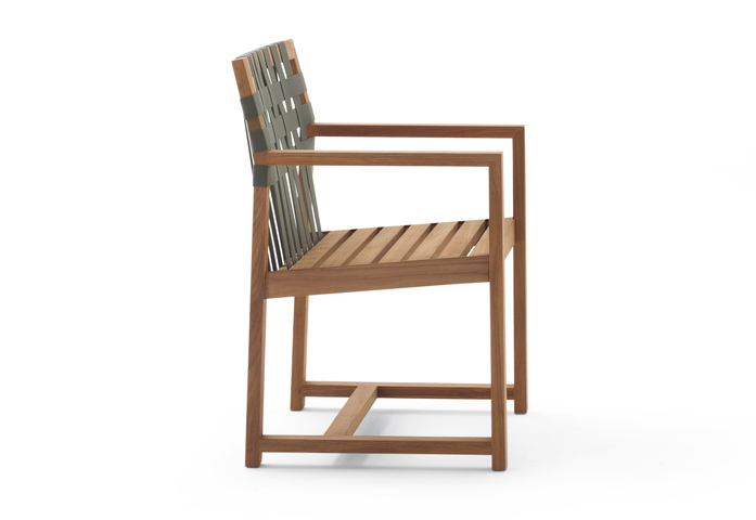 The structure offers both shape and ornament: clean lines and elegant simplicity work horizontally, in a rhythmical game of full and empty spaces. The NETWORK collection is composed by sofas, stools, coffee table, benches, chairs, loungers and a sunlounger, in the teak structure and grey, tobacco or olive belts.