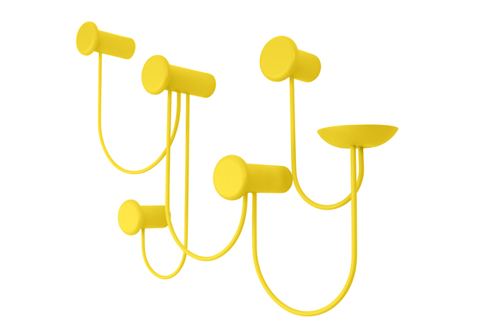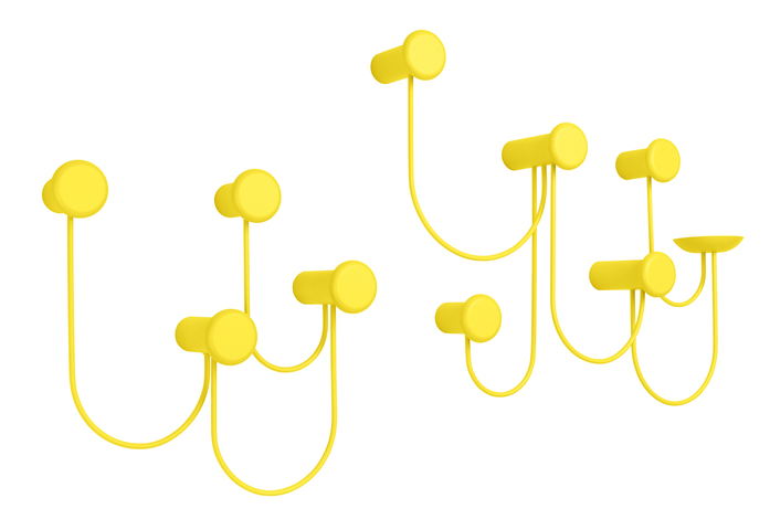 Inspiring installation. PINA is a wall-mounted coat rack and an absolute eye-catcher. Designed by Laurent Batisse, it immediately calls to mind a series of dance steps with a strong, playful character. The coat hooks are made of powder-coated steel, as are the connecting arcs between them. Inspired by the forms of a skipping rope, the arcs offer additional capacity to accommodate clothes on hangers. PINA comes with four hooks, or with five hooks and a small dish for keys and other day-to-day items. Available in a choice of citrus yellow, rosewood or black, PINA is the most charming invitation to hang up coats, hats and jackets — and possibly even to dance.