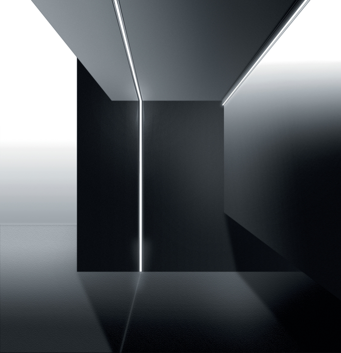 The Continuous Rod “Minimal” is a extruded aluminum profile with a very slim squared design: a very thin profile cuts into the architecture, not only to illuminate but also to emphasize the surrounding space. Continuous Rod can be surface mounted with a flush light source option or recessed, with a retracted light source option for more visual comfort: 1-2-3 meter modules can be used to light up spaces, using an energy-efficient LED strip integrated into the profile.