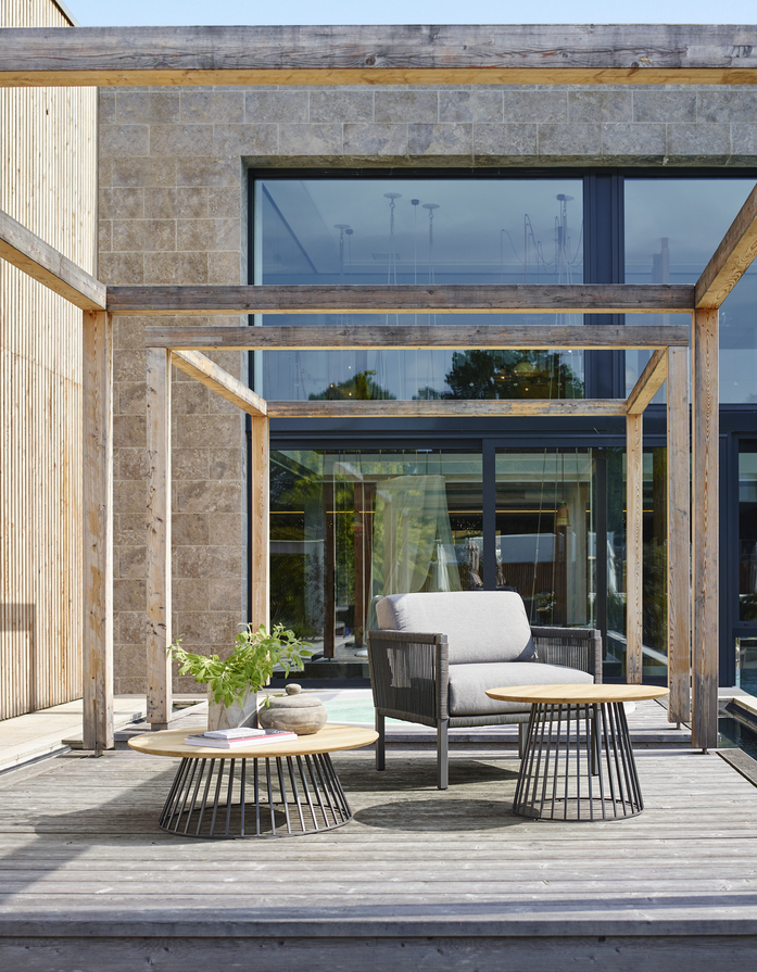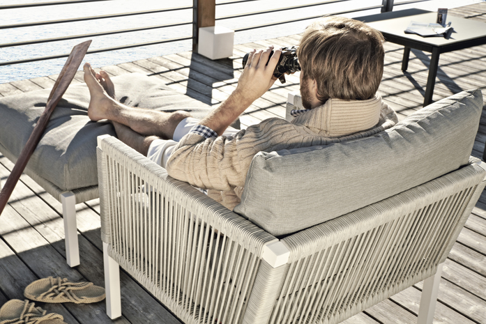 The design of the CLUB series is characterized by an open weave made from one soft-touch-cord which is carried by a straight aluminium frame. With its modern longitudinal weave and cosy cushions, the design conveys a sturdy lightness.