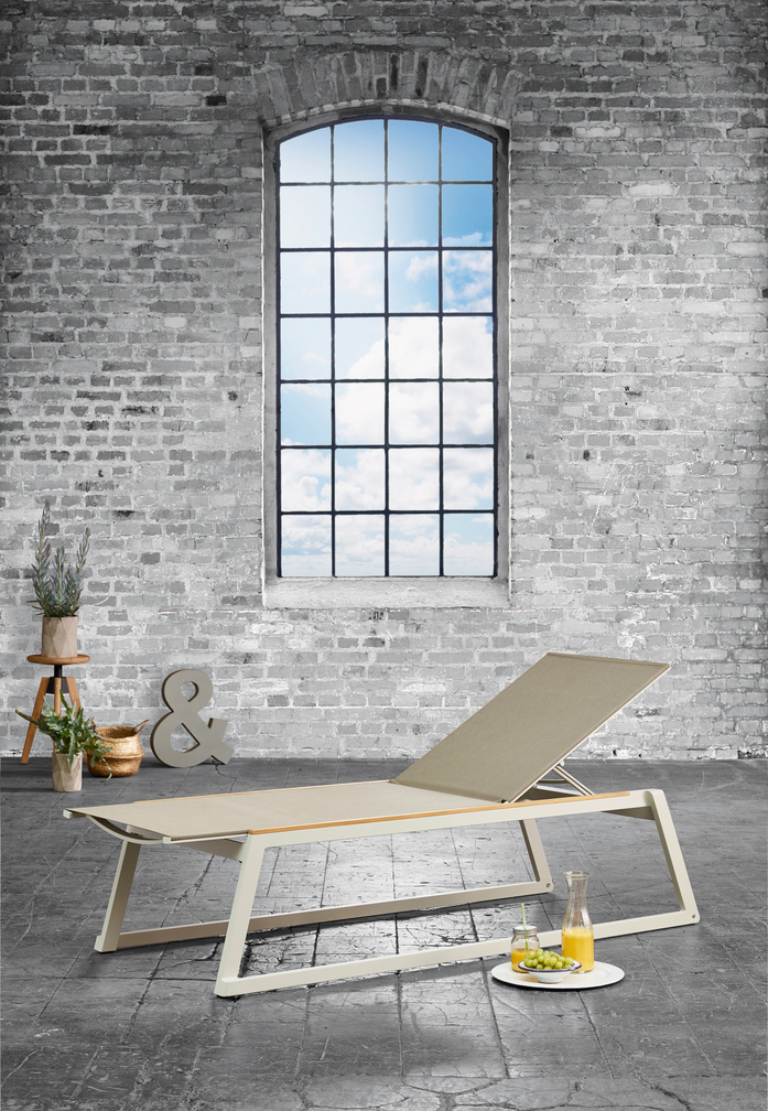 The design of FOXX is distinguished by a modern aluminium frame with a skids bearing an ergonomically shaped Leisuretex seat shell. The flush armrest - optionally teak or aluminium - gives FOXX an elegant look and a pleasant feel.