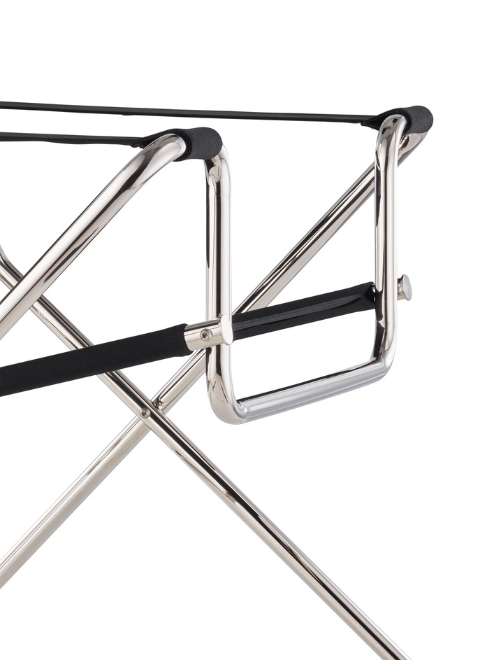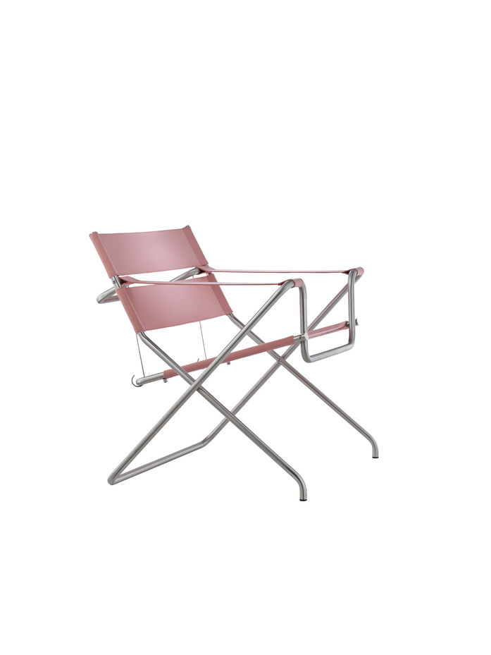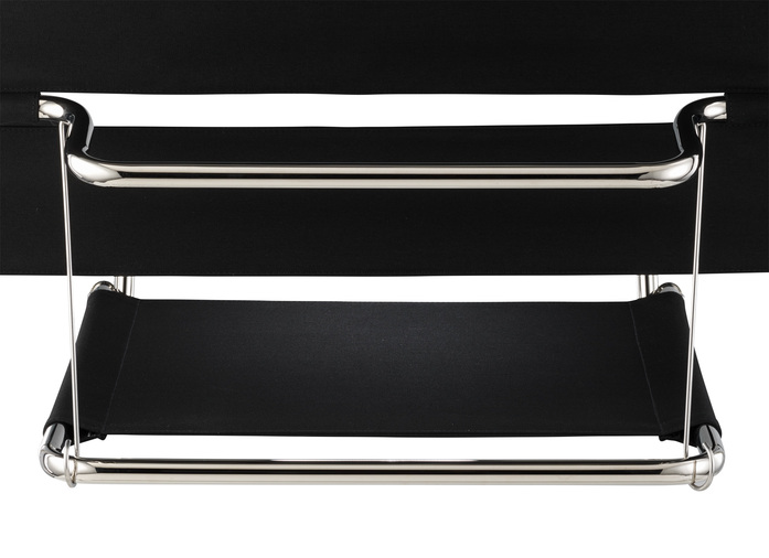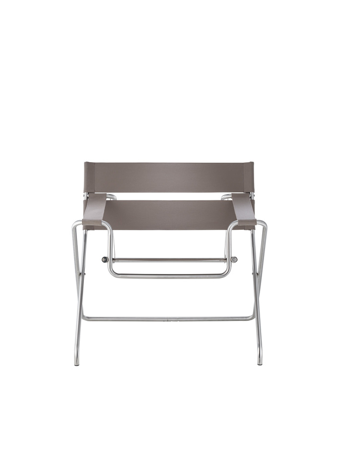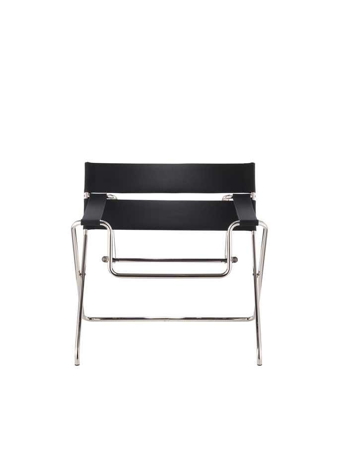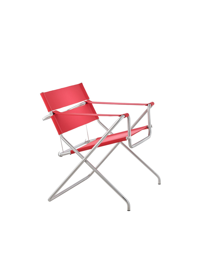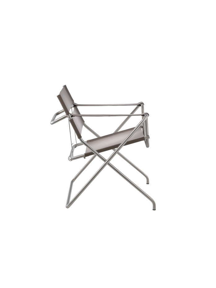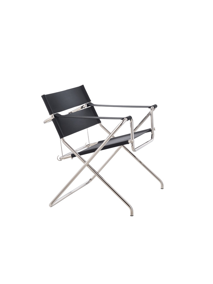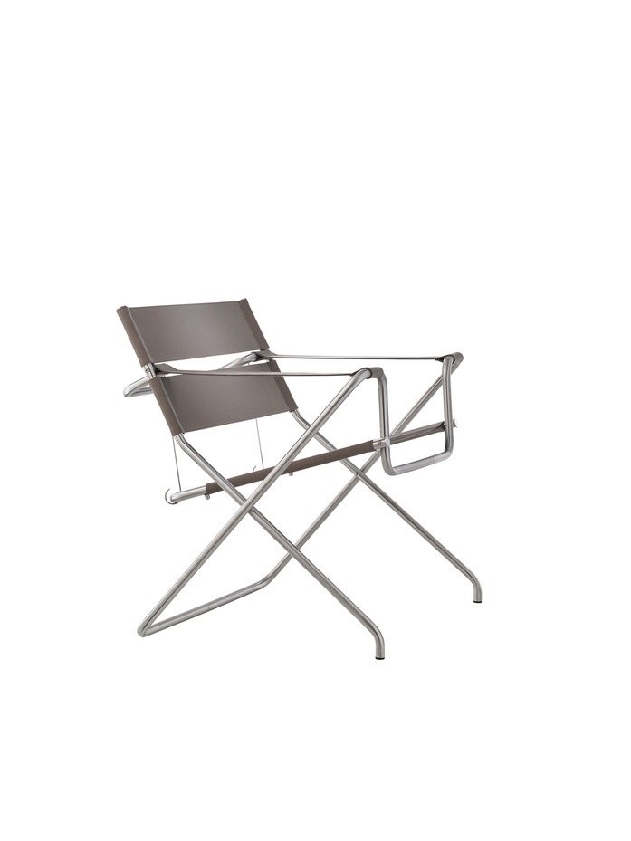 Der B4, wie diese Klappversion zuerst bezeichnet wird (heute Tecta D4) wird im ersten Breuer-Stahlrohrkatalog 1927 für ganz ähnliche Räume beworben, wie sie Giedion als Vorbild propagiert. So sei er für »Schiffe, Sportplätze, Terrassen, Sommerhäuser, Gärten, Gartencafés etc. besonders geeignet.« Und tatsächlich erweist der B4 sich hier gegenüber dem »Wassily«, der im Gegensatz zum herkömmlichen Clubsessel zwar auf Kufen geschoben werden kann, doch trotz der Volumenreduzierung enormen Platz beansprucht, als weit überlegen. Denn das Klappmodell, mit dem das Mobiliar wirklich mobil wird, benötigt nur dann Platz, wenn es als Sessel dient, sonst gibt es den Raum frei.