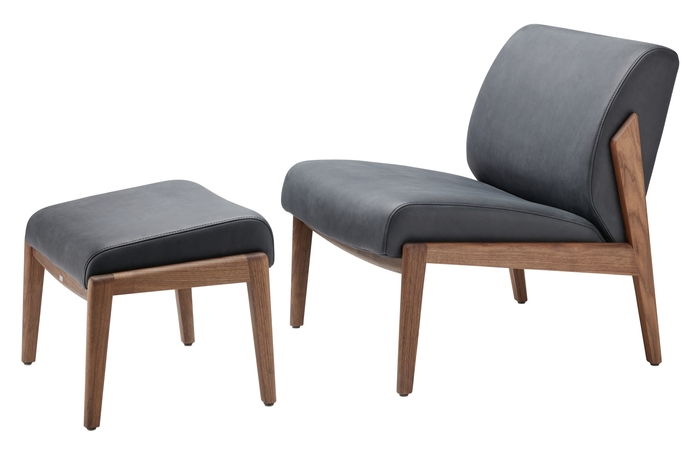 Graphic contours meet upholstered cosiness: the solid wood frame of the armchair 860 is characterised by the recurring theme of the triangle in the individual wooden elements. The extremely comfortable seat and backrest upholstery forms a suspenseful contrast with these striking, dynamic contours. Another characteristic of this comfortable armchair, which is also suited for lounge areas in the contract business, is its individualisation flexibility. The wooden elements of the matching stool refer to the design of the armchair’s frame.