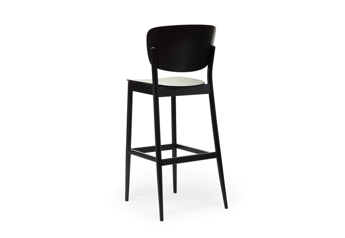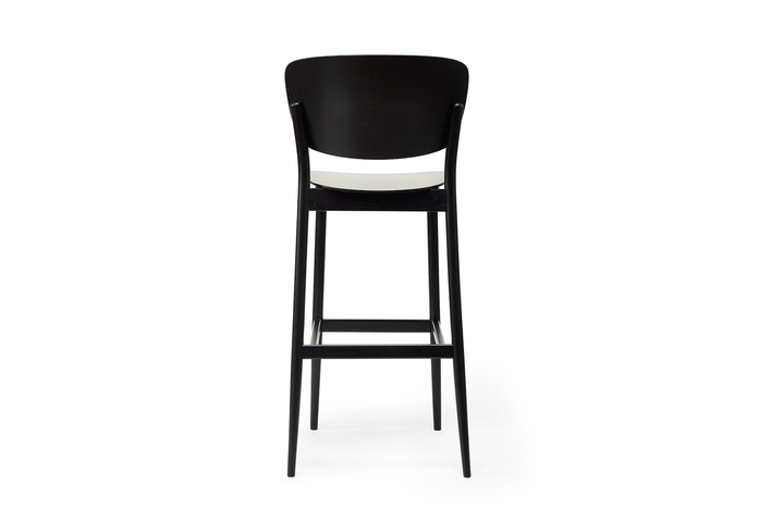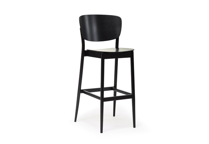The barstool emulates the forms and characteristics of its namesake chair. Final colour finishes can significantly influence the character of the barstool and thereby satisfy the needs of countless interiors. With two height options, the barstool will find its use in a classic bar and at taller kitchen islands/counters.