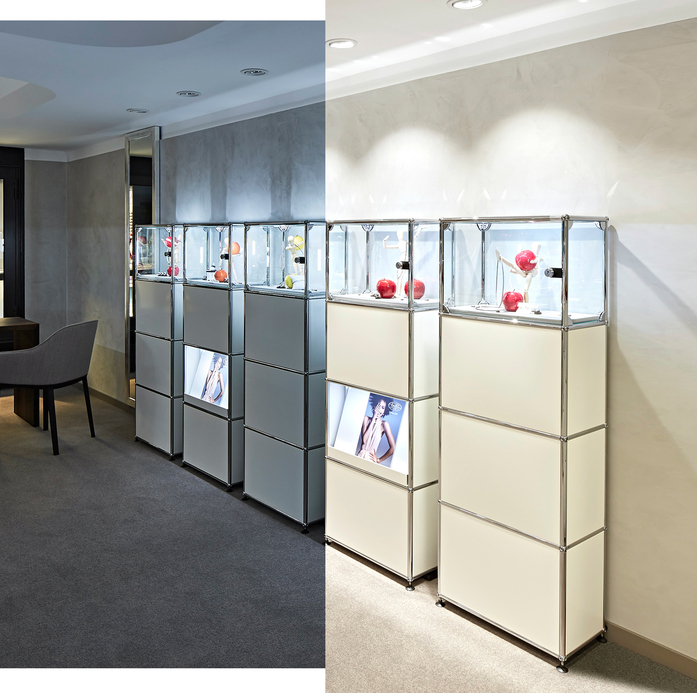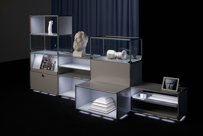 Make your dream office a reality. Design bespoke shelving, storage and display systems that elevate your workplace. The core of our signature furniture system is an almost infinitely versatile chrome ball-and-tube frame. Make it yours with coloured steel insert panels, glass shelving, customisable doors, drawers and much more.