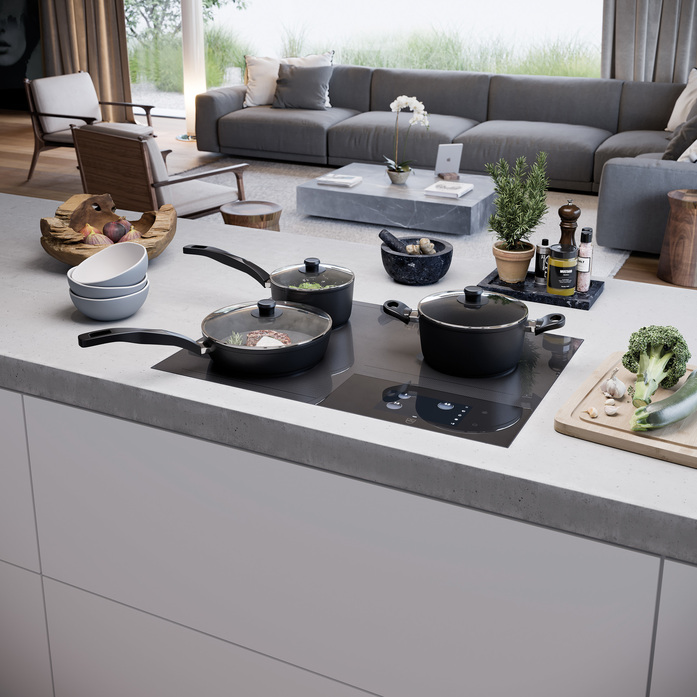 Do you enjoy having unlimited flexibility? If so, you’ll love the FullFlex induction hob, as it does away entirely with specified cooking zones. Thanks to its state-of-the-art inductors, it is able to automatically detect the position and size of the cookware used. The FullFlex hob is now also available in a width of 70 cm. The hob can accommodate up to five pots and pans in any position on its glass ceramic panel, and thanks to the memory function, you can even move them around. The hob also boasts a large full-colour graphic display with intuitive touch operation, giving you all of the information you need at a glance. Functions such as AutoPowerPlus and Teppan Yaki make your life easier and transform time spent cooking into an experience you’ll look forward to.