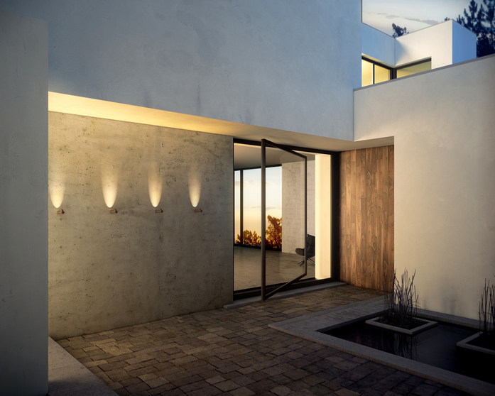 The Bamboo outdoor lights are manufactured in a colour palette that integrates seamlessly with exteriors: khaki, oxide (rust) and stone. Vibia offers a surface mounted or built-in installation equipped with LED light source.