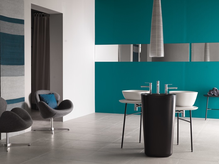 basins can also be regrouped at the centre of the room as a contemporary nod to