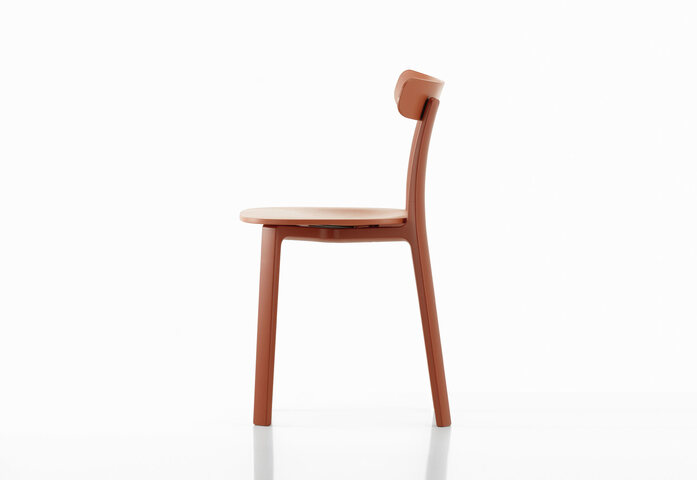 Thanks to the employment of high-performance plastics, the All Plastic Chair is a robust, durable chair suited for use in home dining rooms as well as cafés, restaurants and other public venues.