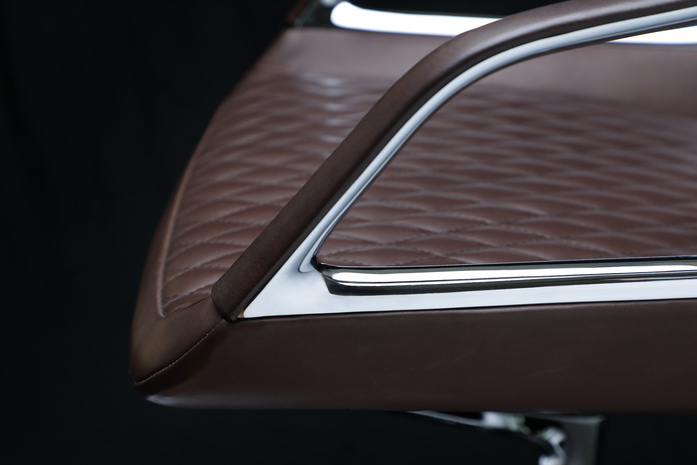For the Iconic Edition, upholstery foam, laminated on both sides, is added to part of the seat and backrest cover. Stylish, diamond-shaped top stitching is used to sew the foam to the cover. Due to all the many, three-dimensional mini cushions, the upholstery offers superior comfort. It also lends the chair a unique appearance and the centuries-old top stitching method adds a touch of luxurious quality. And together with the elegant, iconographic shape of the chair, the result is a seminal symbol with an aesthetic all of its own.
